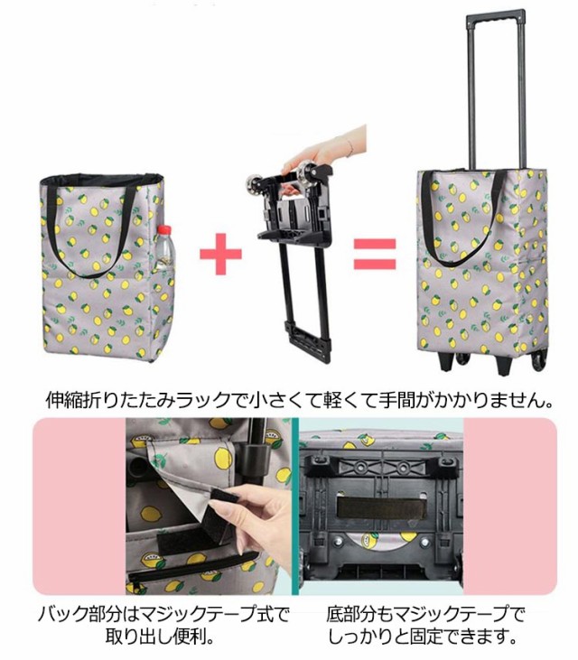 | 大容量でたくさんのお買い物もラクラク? 大容量でたくさんのお買い物もラクラク? 伸縮折りたたみラックで小さくて軽くて手間がかかりません。 組み合わせてレバーバッグとして使え、分解して手提げバッグとしても使えます。 バック部分はマジックテープ式で取り出し便利。 底部分もマジックテープでしっかりと固定できます。 大容量で40キロまで耐えられます。 巾着タイプで品物の紛失を防ぐことができます。 後ろにはジッパー付きポケットあり、小物収納にも可能。 裏地にアルミ蒸着フィルムを使用し、保冷?保温機能をもたせているので、オールシーズンのお出かけに最適。 キャスター付きで軽量で高齢者?お年寄りにも使いやすい。 敬老の日、母の日のギフト?プレゼントにも喜ばれます。 | |