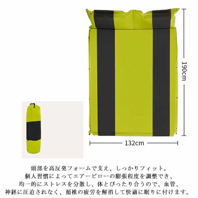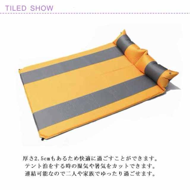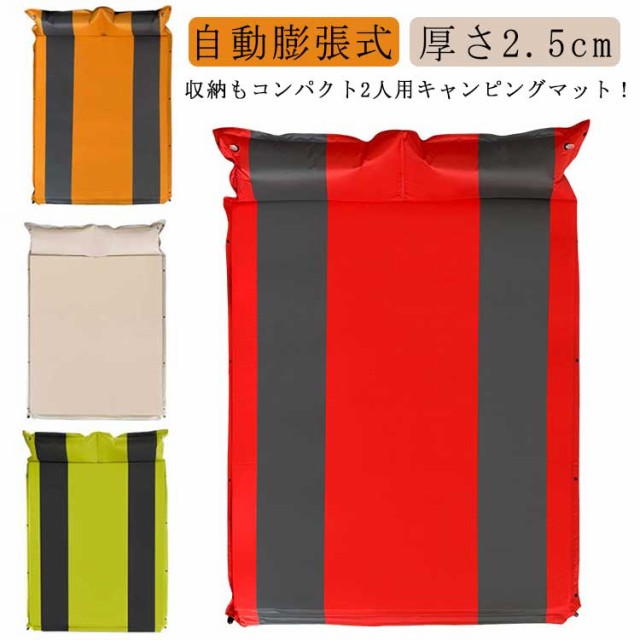 自動膨張式 エアーマット マットレス エアマット 厚さ2.5cm エアマットレス エアーベッド キャンプ 車中泊 防災 登山 車 キャンピングマット ダブル 二人用 2人用 枕付き マット レジャー アウトドア 連結可能 軽量 コンパクト 持ち運び便利
