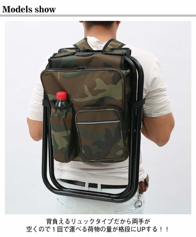 | 【椅子型リュック】【保温?保冷】【折りたたみ】【4color】 保冷機能が付いたリュックを背負って持ち運び、釣りやレジャー時に現地で椅子にもなる優れもの? 折りたたみ椅子×保冷機能付きバッグがひとつになった便利なリュック 待ち時間や疲れた時など、開くだけ組立が簡単なのでどこでも腰掛けることができる。 開けばイス、背負えばリュック! 外側は摩擦、破れに強く、防水撥水性に優れた生地を使用。 小物の収納ができるサブポケット付き! 背負えるリュックタイプだから両手が空くので1回で運べる荷物の量が格段にUPする!! リュックの中は保温冷機能付きなので、アウトドアなど様々なシーンで活躍。 | |