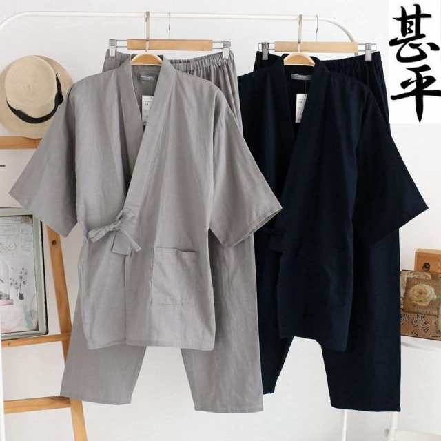 甚平パジャマ お揃いパジャマ 【期間限定 5倍ポイントUP!】甚平 メンズ 部屋着 無地 セットアップ ナイトウェア ペアルック 夏 【期間限定