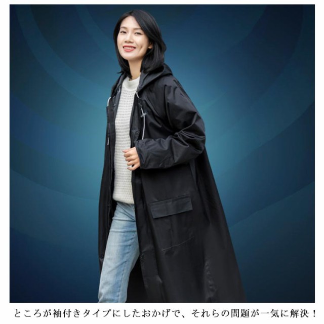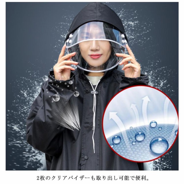 レインポンチョ レインコート 男女兼用 袖あり カッパ 前開きジッパー ポンチョ レインウェア レインコート 袖付き メンズ 雨合羽 自転車 バイク おしゃれ ロング クリアバイザー 雨具 アウトドア レディース