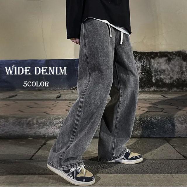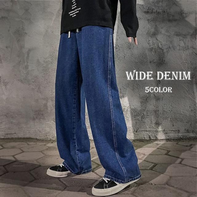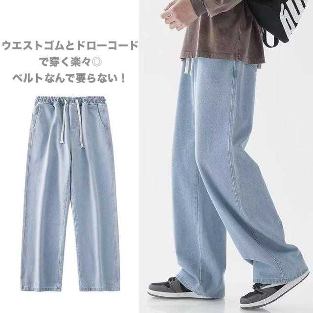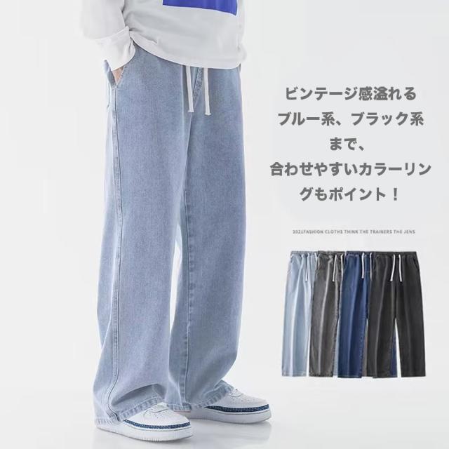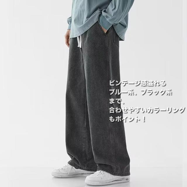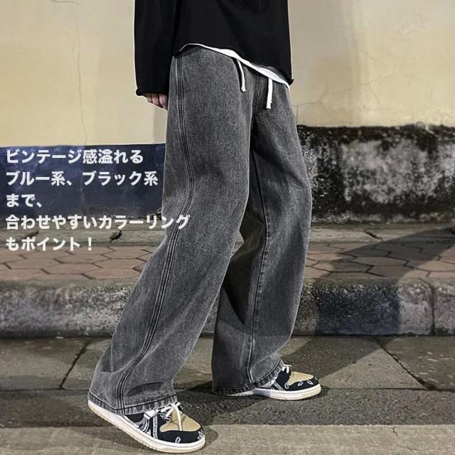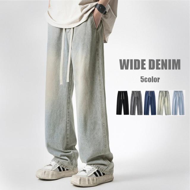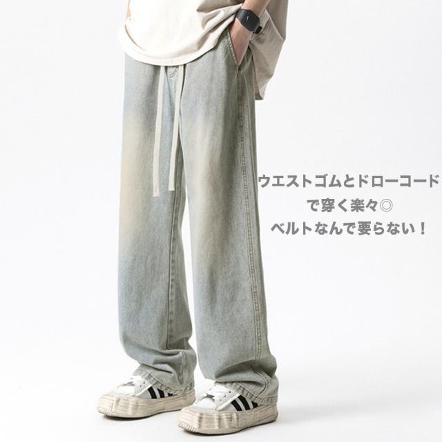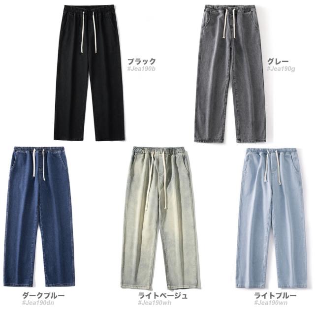 期間限定 SALE ワイドデニムパンツ ヴィンテージ風 メンズ ゆったり ウエストゴム 5色 #Jea190c1 M便