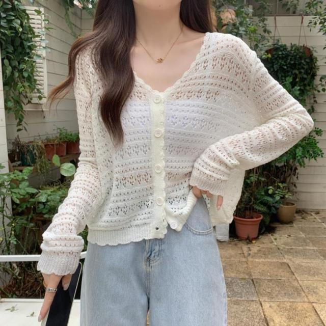 カーディガン レディース 春服 夏物 長袖 羽織るもの 無地 彫り ショート丈 可愛い きれいめ トップス 羽織り ライトアウター 春コーデ 夏コーデ 海 ビーチ