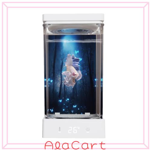 小型ベタ水槽 1.4Lコンパクト水槽キット 20-30°C温度設定 LEDライト付き 水換え簡単 セットアップ・メンテナンス簡単 スタータータンク