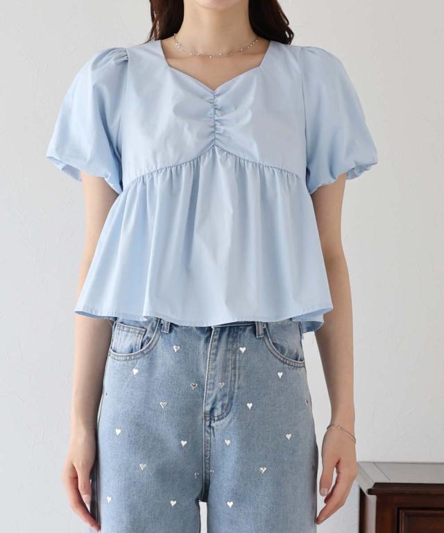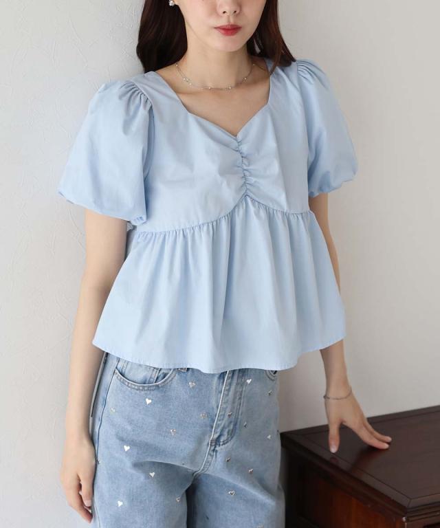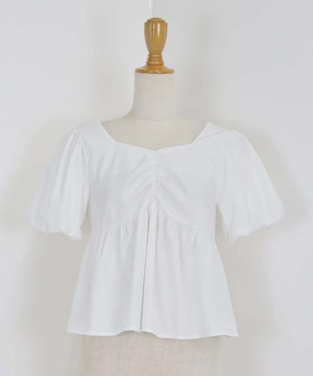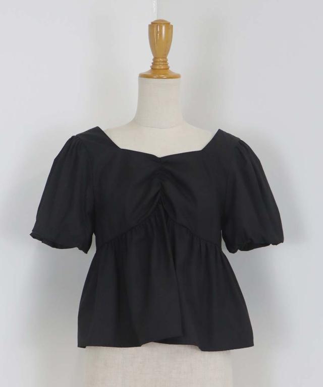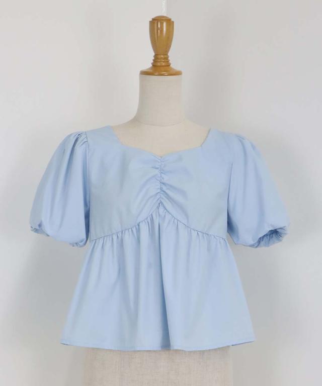 バルーンスリーブのフロントギャザーデザインブラウス