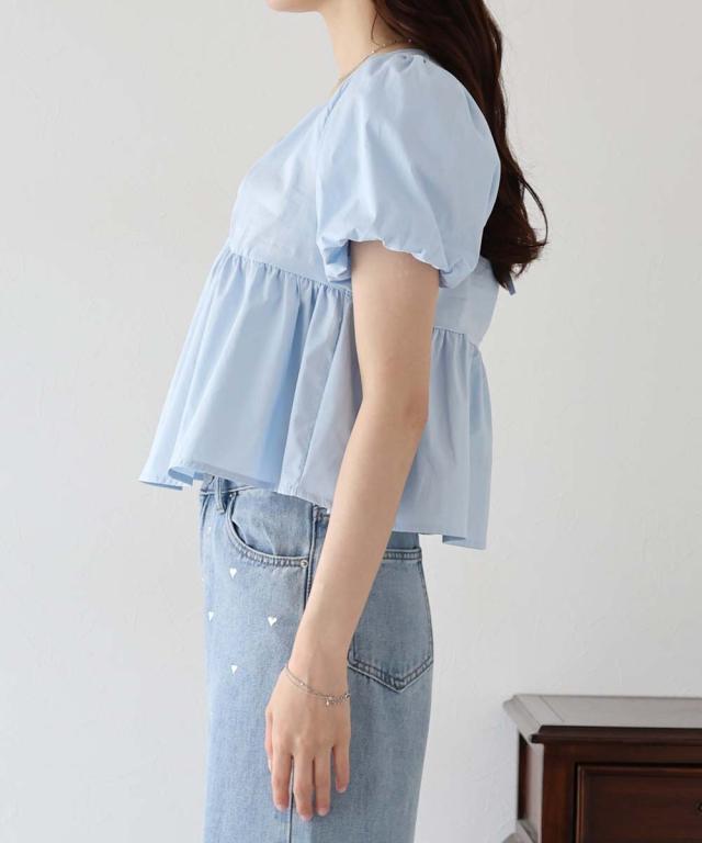 ペプラムパフスリーブブラウス