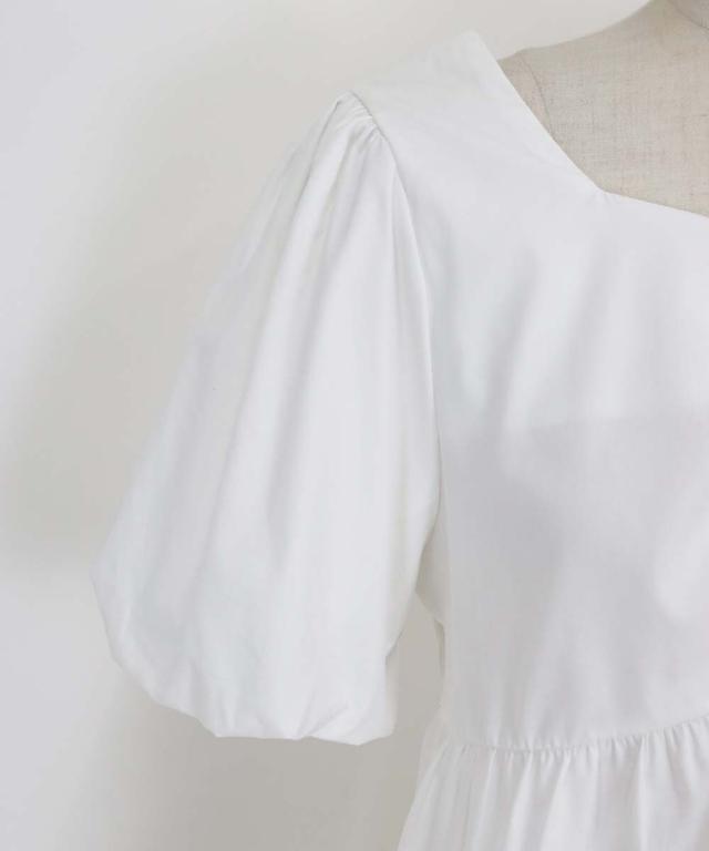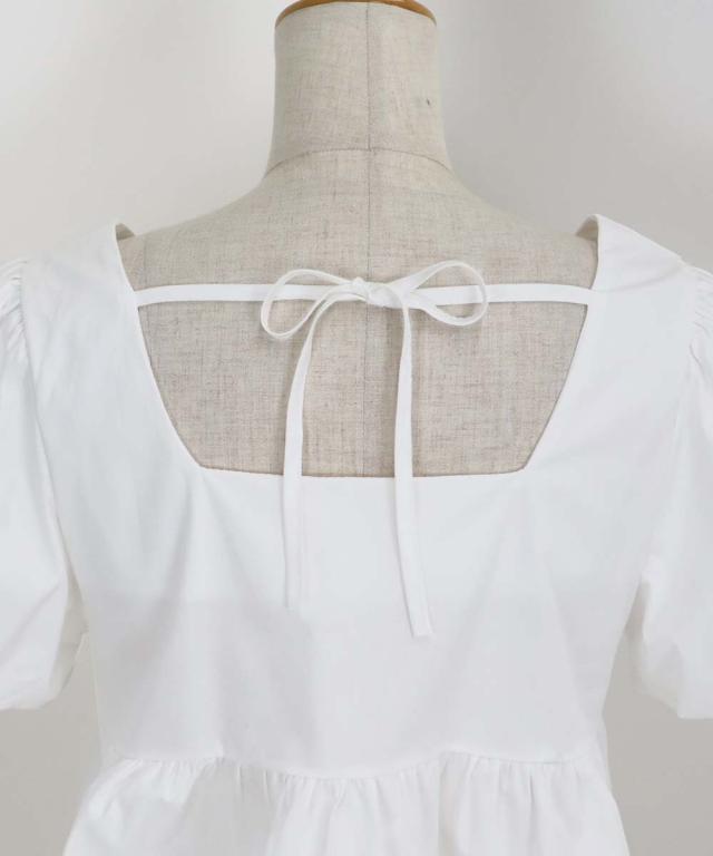 バックにはリボンを施し、またウエストにもギャザー入れることでペプラムデザインに。