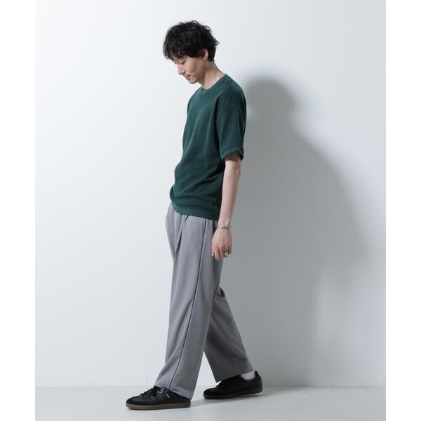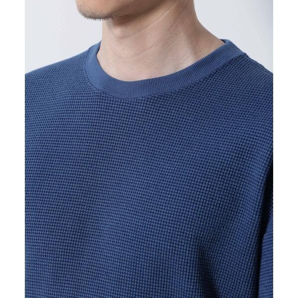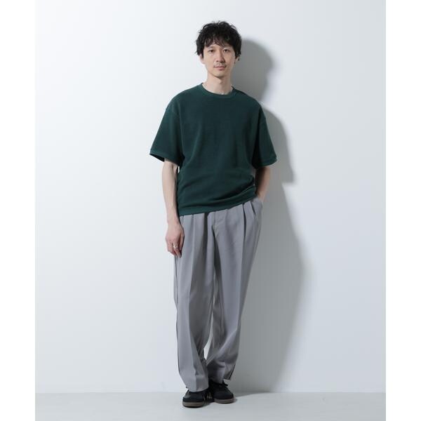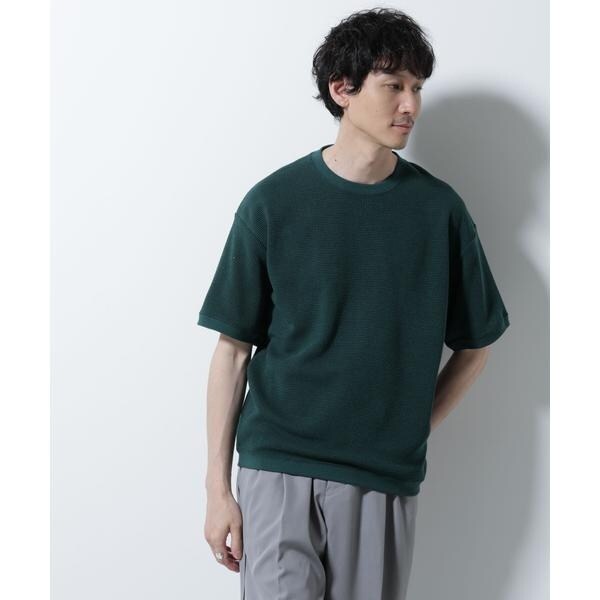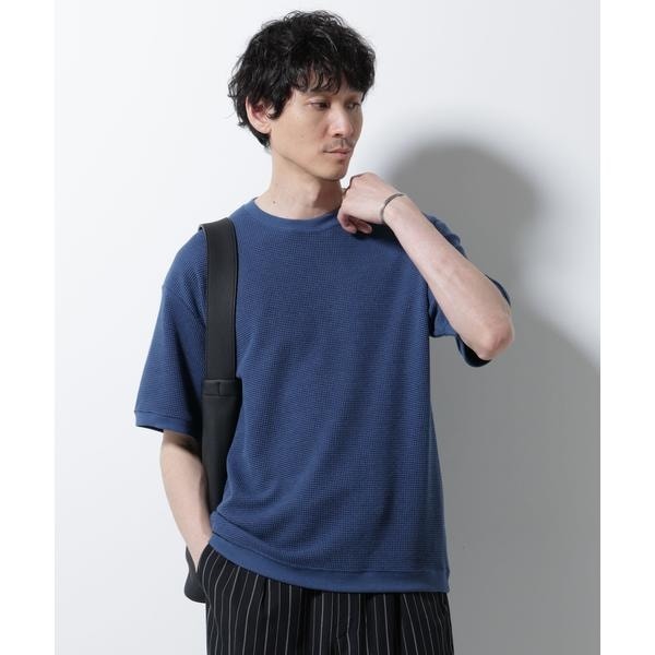 ザックリとした風合いのワッフルTシャツ。微光沢あるポリエステル糸を使用したきれいめ見えする1枚。立体的なワッフルは、汗をかいても肌離れがよく、着心地抜群のアイテムです。