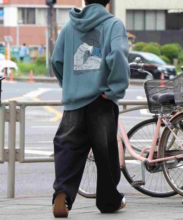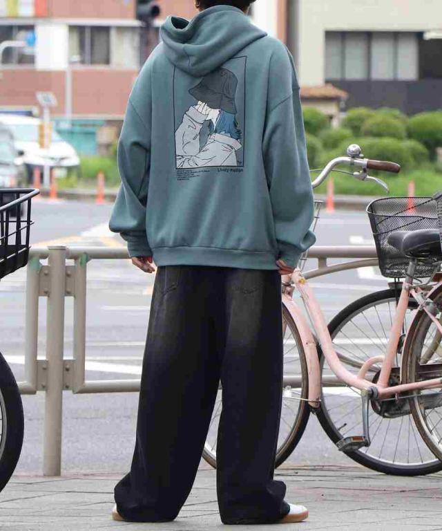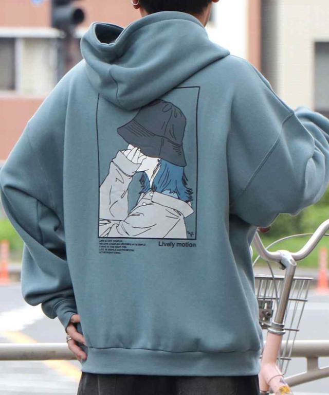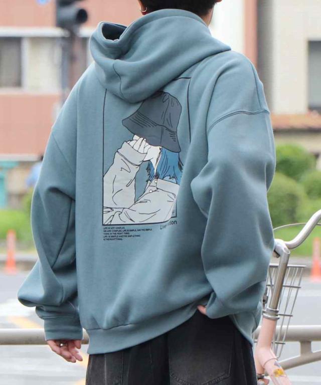 ILL’S イラストバックプリント ワンポイント刺繍 ビッグシルエット プルオーバーパーカー