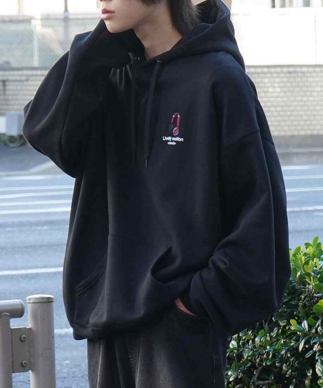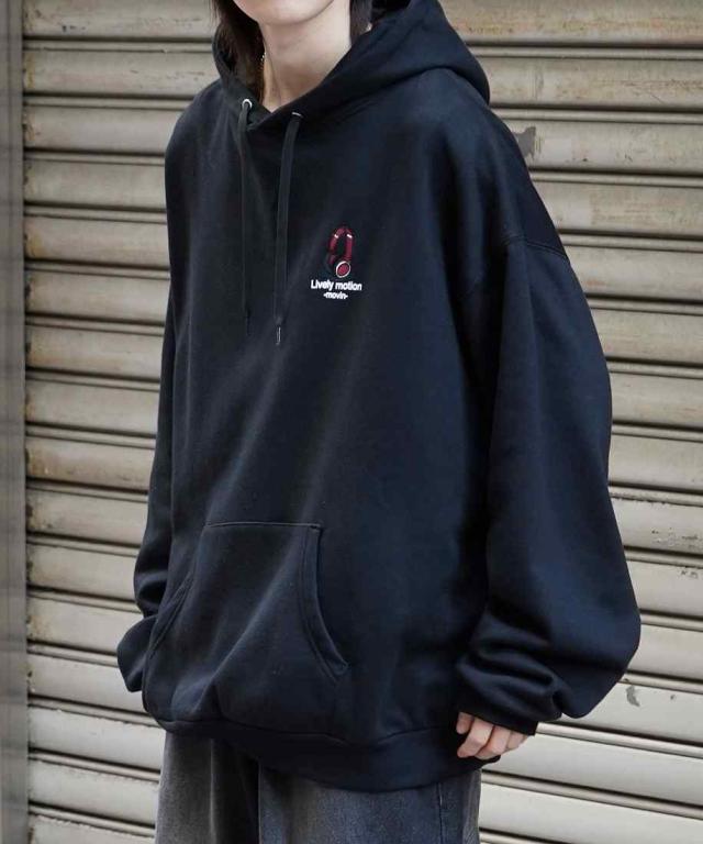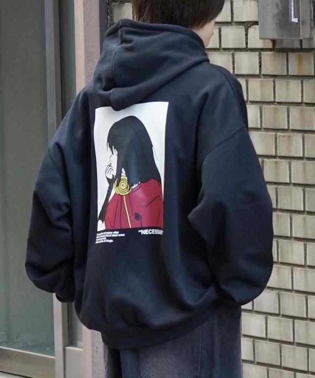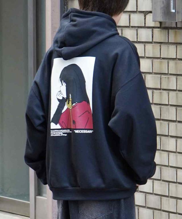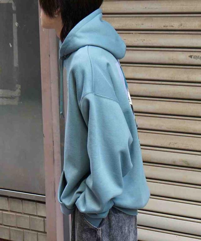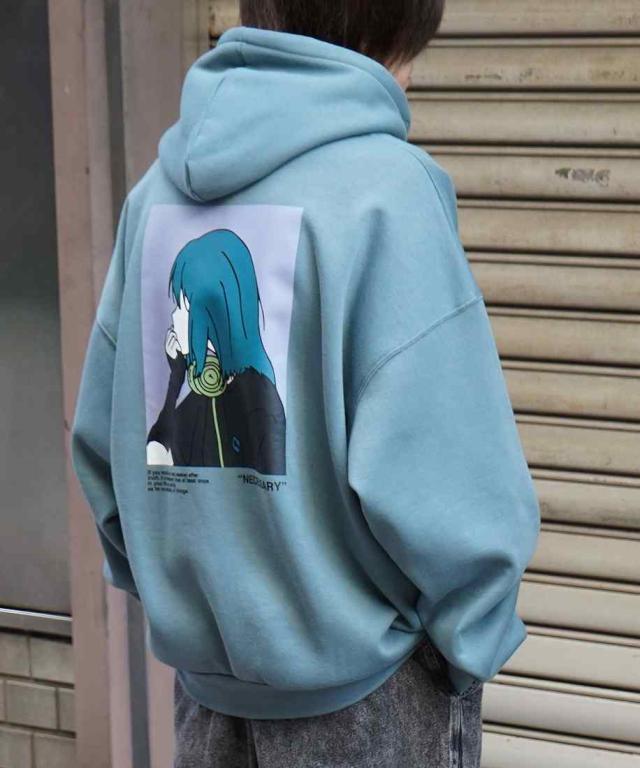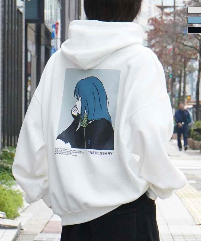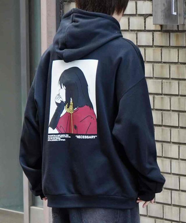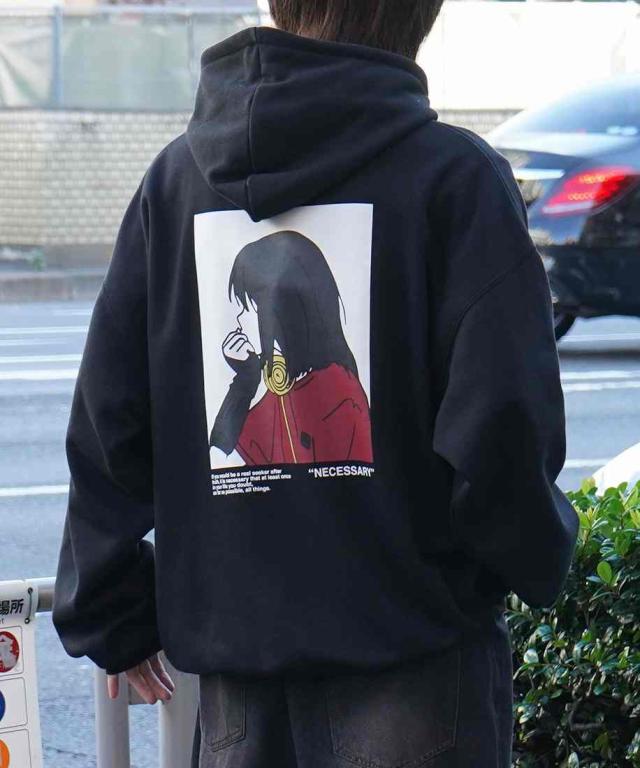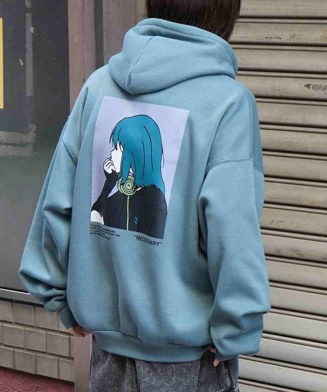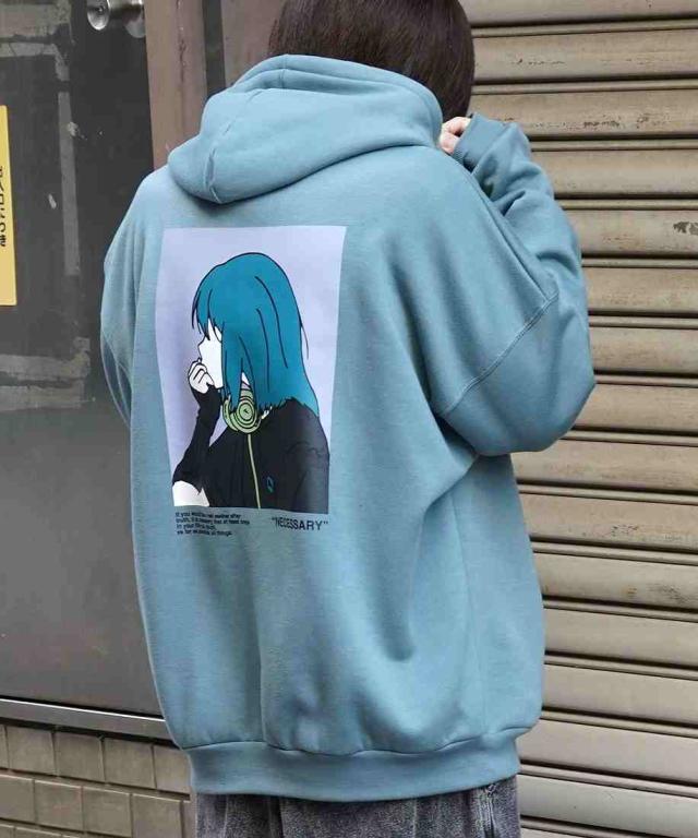ILL’S イラストバックプリント ワンポイント刺繍 ビッグシルエット プルオーバーパーカー