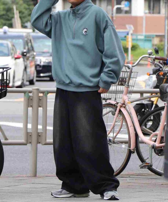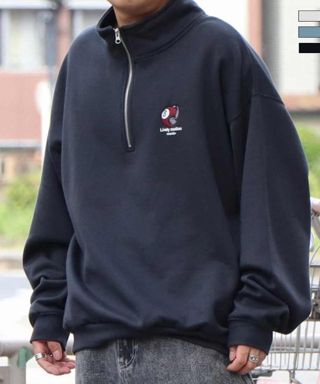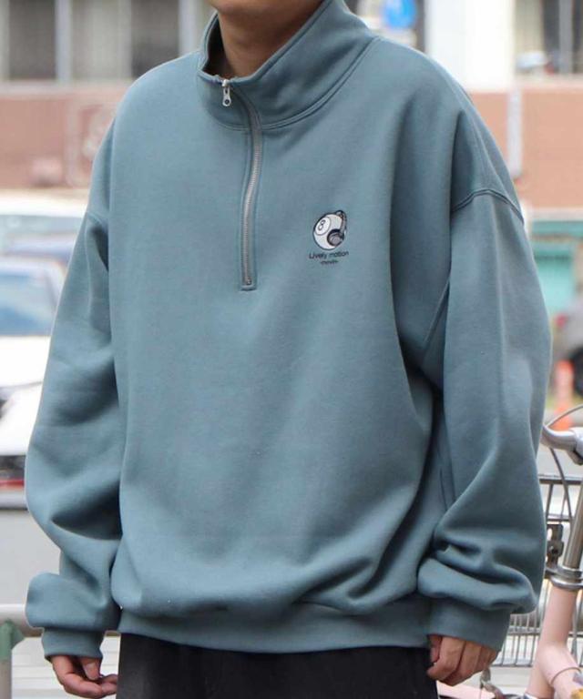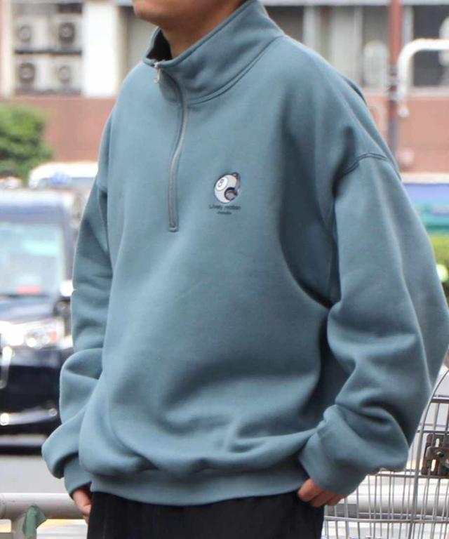 ILL’S イラストワンポイント 刺繍 ビッグシルエット 裏起毛ハーフジッププルオーバー