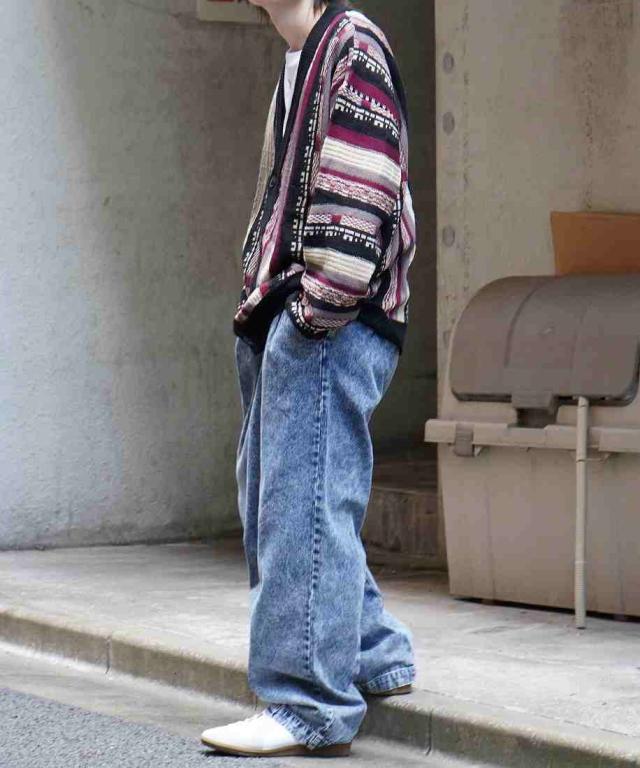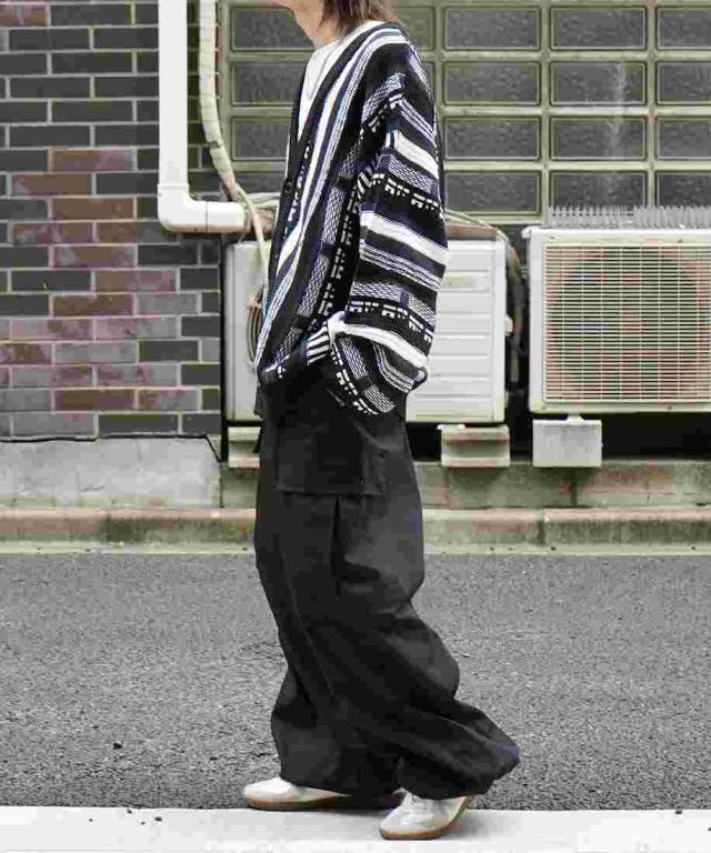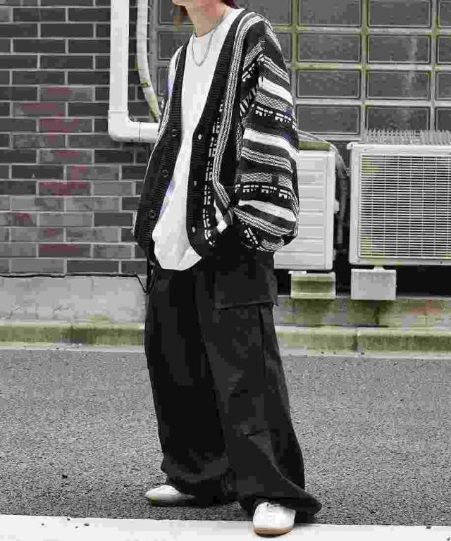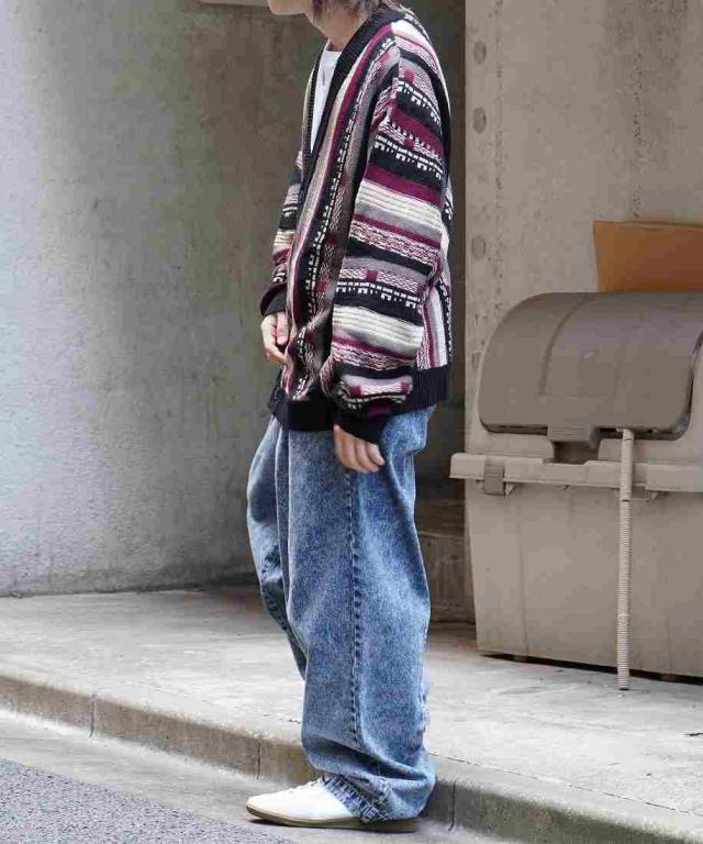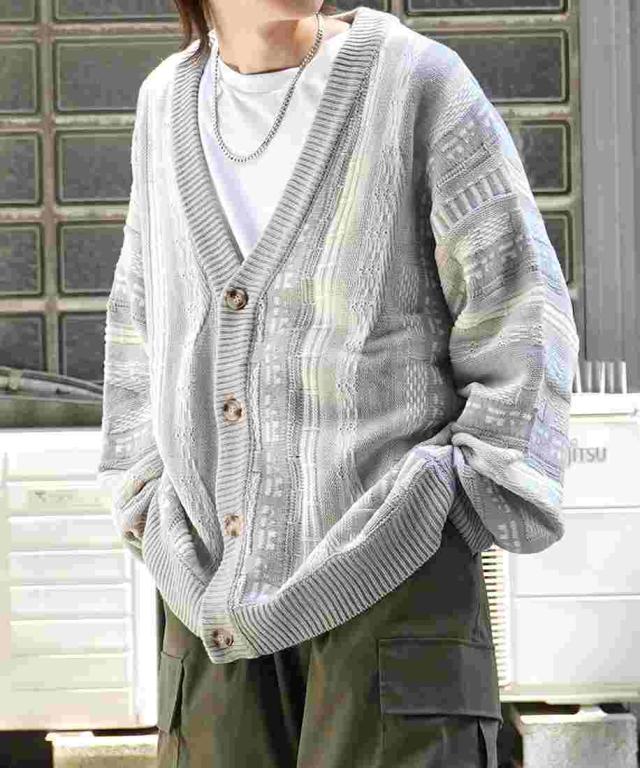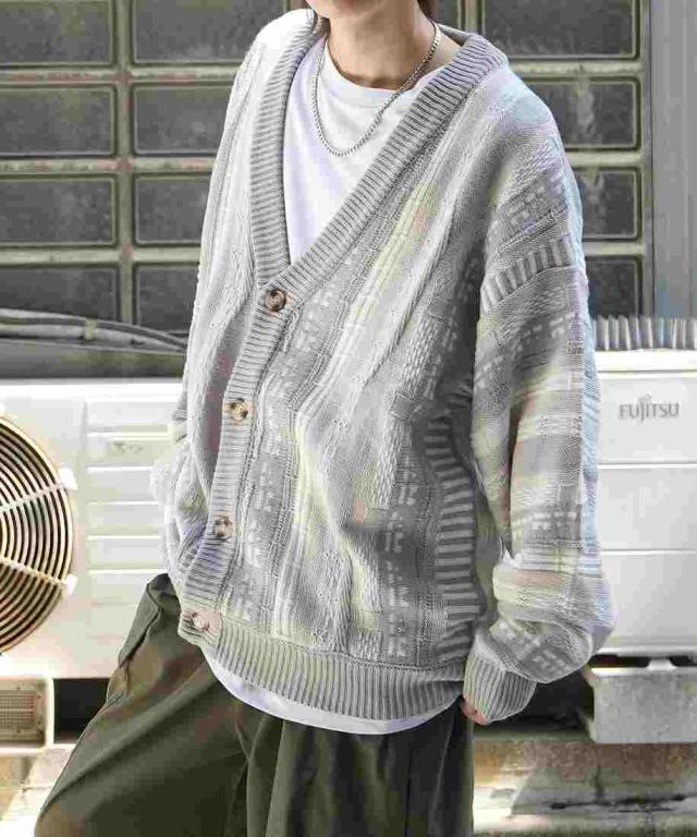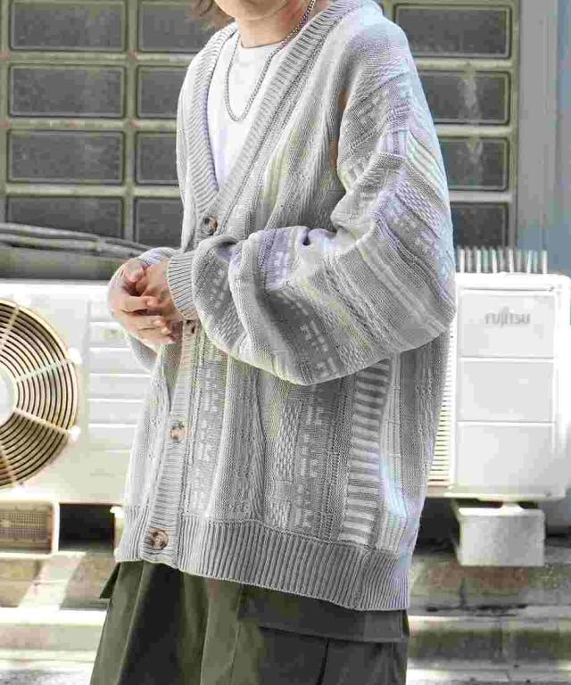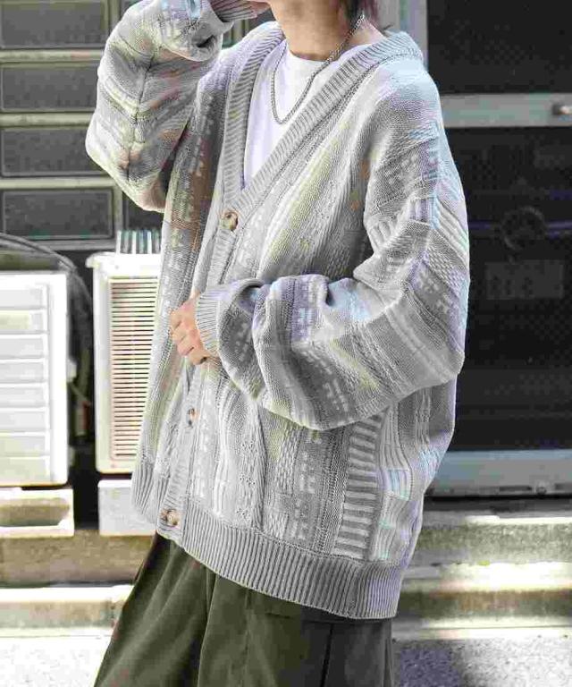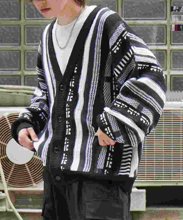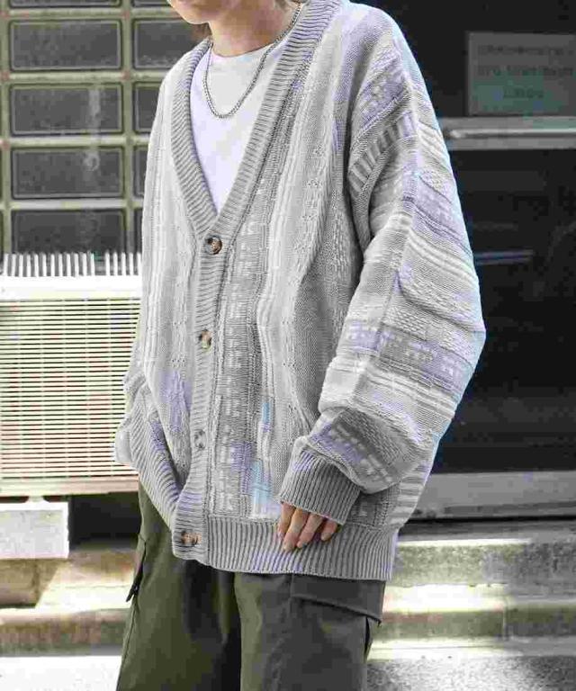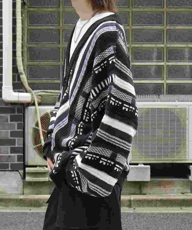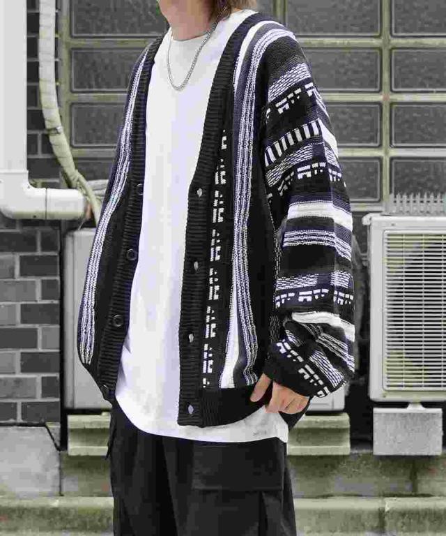 コンファーム(Confirm)/Confirm レトロジャガードストライプ柄 ビッグシルエット 3Dニットカーディガン