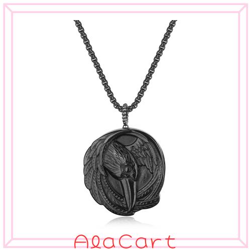 ◆商品名:[コアイ] カラス彫り オブシディアン パワーストーンペンダント ネックレス メンズ