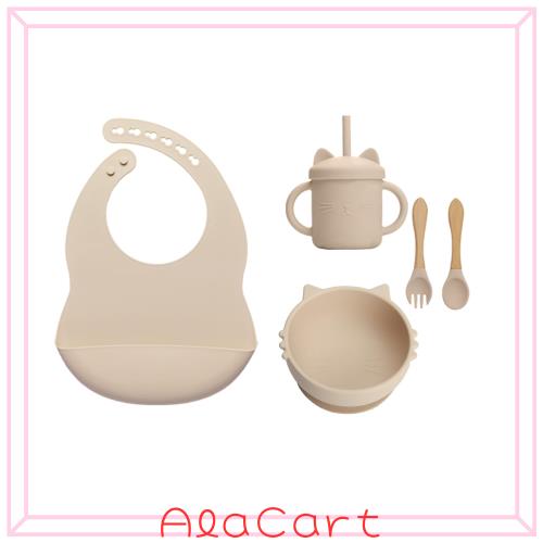 O-Life ベビー食器セット 5点セット ボウル スプーン フォーク 食事用エプロン コップ ベビースタイ 食事用 赤ちゃん 離乳食食器 食品級