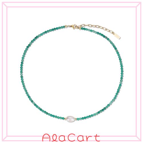 真ん中に、約11*8mmの淡水パールが飾られ、グリーンアゲートネックレス全体に独特の質感と魅力を加えています。パールのミルキーな色合いが、グリーンアゲートとゴールドのビーズとのコントラストを引き立て、より一層高級感を演出します