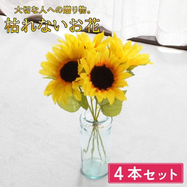 造花 花 ひまわり 花束 プレゼント ギフト ブーケ アレンジ 4本セット 束 仏花 仏壇 枯れない花 お供え 花束 仏壇 仏壇用 造花 法事 命日 枕花一周忌 お盆 お彼岸 供え物 お花 法事 命日 初盆 新盆 仏事 贈り物 ご仏前 黄色 イエロー