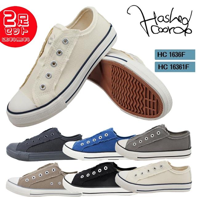 2足セットで5984円 ハッシュド コーデ スニーカー スリッポン レディース Hashed Coorde 16361 1636 靴 カジュアル ブラック ホワイト グレー チャコー ブルー