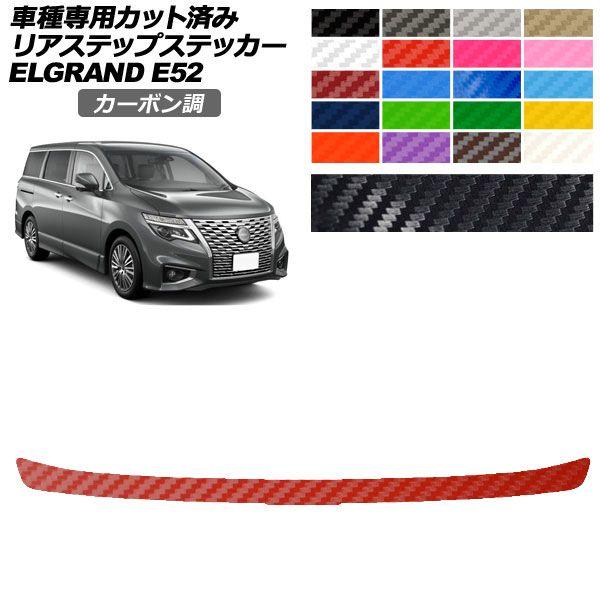 カーステッカー 日産 エルグランド E52系 後期 2020年10月〜 カーボン調 リアステップ 外装 選べる20カラー AP-PF2CF0275 カラー: ブラック ホワイト レッド ブルー イエロー グリーン オレンジ パープル ピンク ネイビー ブラウン ボルドー クリア ゴールド シルバー ガンメタリック マゼンタ ダークグリーン メタリックブルー ライトブルー