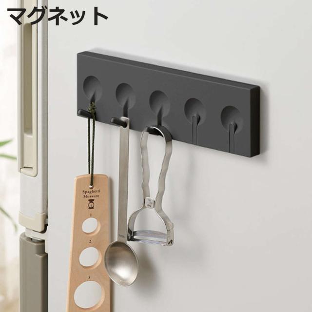 キッチン収納 5連フック マグネット ブラックシリーズ ( キッチンフック 吊り下げ収納 小物フック キッチンツール収納 小物掛け 磁石 吊り下げ 収納フック マグネット式フック キッチン 洗面所 洗濯機 冷蔵庫横 黒 )