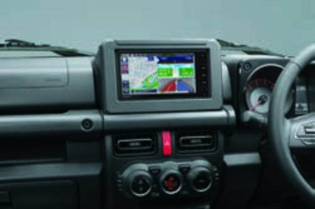 ナビゲーションやオーディオ周りを、グレー ×ブラックのカラーリングと、ボリューム感の あるデザインがタフな印象を与える、7インチ ワイド専用のガーニッシュバンパーです。