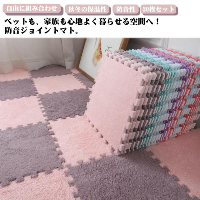 ジョイントマット プレイマット 起毛タイプ 床暖房対応 20枚セット 滑らない ラグ カーペット 起毛タイプ 防寒 防音 もこもこ 自由に組み合わせ 柔らかい タイルカーペット フロアマット 赤ちゃん ベビー 子供部屋