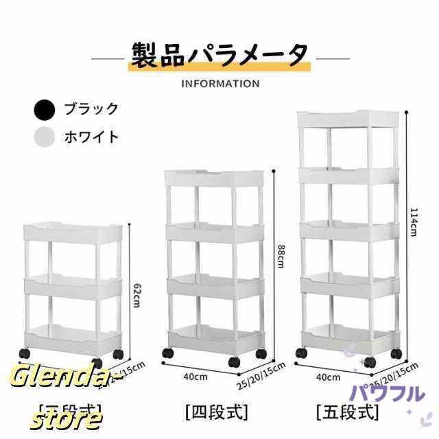 【材質】:PP 【カラー】:2色 【サイズ】:幅15cm/20cm/25cm*長さ40cm*高さ62cm/88cm/114cm(三段式、四段式、五段式) 【注意事項】 ※万一在庫切れの場合はご了承ください。 ※商品の色及びサイズは、撮影状況やPC環境により多少異なって見える場合がございます。 ※サイズ数字は目安です。商品により若干の誤差がございます。 ※メーカーの都合により、商品細部のデザインや素材が予告無く変更される場合がございます。 ※製造時期と使う生地により商品個体の色合い表現が少し違う場合がございます。複数ご購入の場合、ランダムで発送いたしますので、個体によりの色違いはご容赦ください。 【ガイド】 ※移動便利?頑丈:4つのキャスター付きなので360°自由に回転し、床を傷つけることなく手軽にそして静かに動かすことができます。平らでない表面でもぐらぐら揺れませんので安心に使えます。キャスターにはブレーキが付いています。軽くて移動しやすいのがメリットですが、安定性に欠けるのがデメリットなので、安定性を高めるために洗濯洗剤などの重いものを下の層に置くことをおすすめします。 ※どんな場面でも活躍:細身設計で部屋の隙間を活