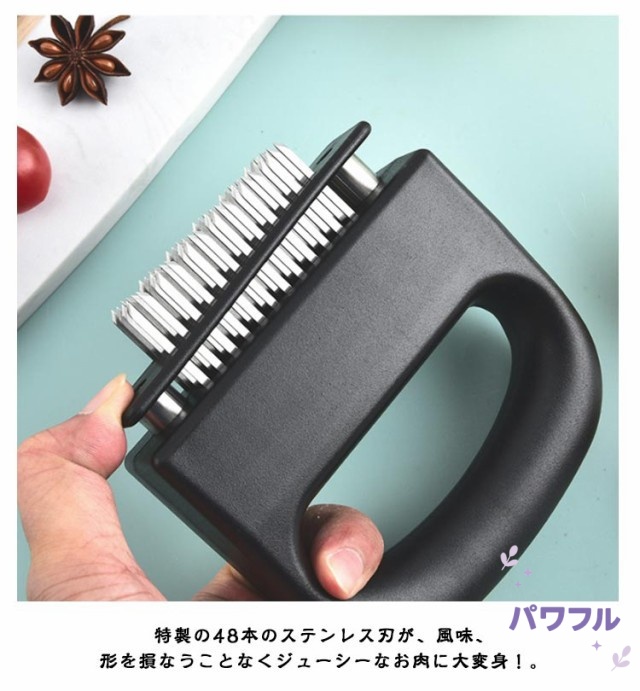 【パワフル】48刃 ミートテンダライザー ステンレス製 肉たたき 調理小道具 肉叩き 肉刺し器 肉筋切り器 お肉を柔らかく 錆びにくい 家庭用 ステーキ かつどん 手持ち キッチン用 調味料染み込み料理用 キッチンツール 料理用 BBQ ミートテンダライザー 業務用 焼肉