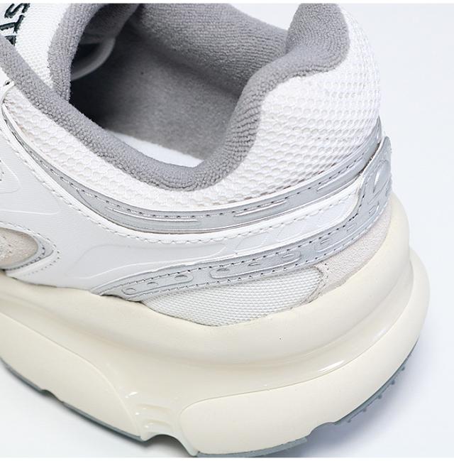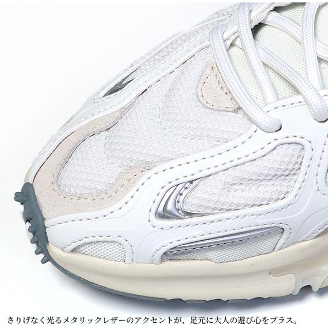ファッションとスポーツを融合させたスタイリッシュなスニーカー ・目の大きさの異なる2種類のメッシュ素材を使い分け ・デコラティブな切り替えパターンのオーバーレイ ・アウトソールはミニスパイク形状でトランザクションが向上 ・TPUインサートシャンクで歩行した時の安定性の確保 ・アクセントとして機能するメタリックレザー アッパー:テキスタイル/シンセティック ライニング:テキスタイル アウトソール:ラバー |