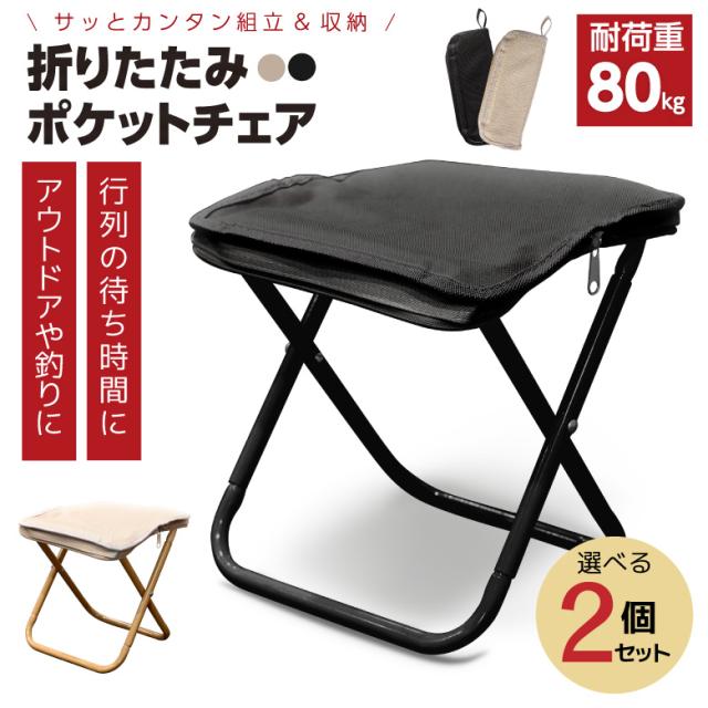 【2脚セット】折りたたみチェア 折りたたみ椅子 ポケットチェア コンパクト 軽量 折り畳み 収納袋 ポケット収納 持ち運び 携帯 キャンプ 釣り フィッシング アウトドア 海 山 いす イス 耐荷重80kg 運動会 お花見 花火大会 ポータブル