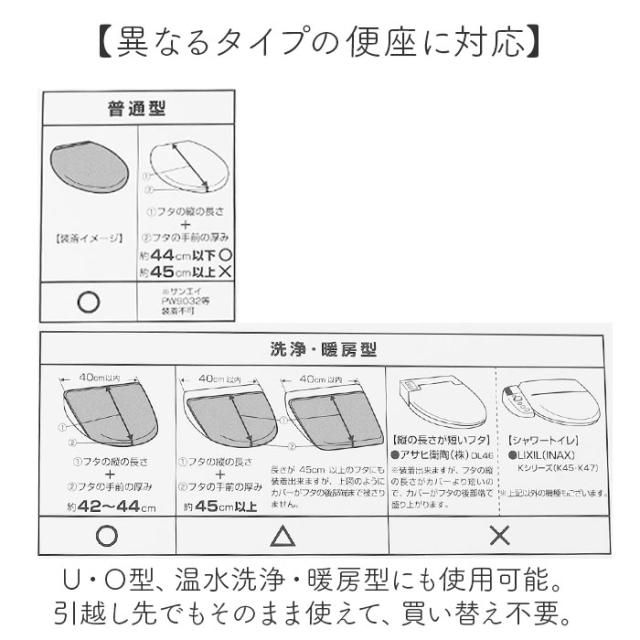 | 注意点 | [兼用フタカバー付属品]吸盤 x 2個 ※洗濯機 可(ネット使用)※一部ドラム式は不可 ※ドライクリーニング 不可 ※乾燥機 不可 ※長時間日光にあたったり、摩擦、水漏れなどによる色落ちや色移りすることがあります。 ※お取り扱いの際は、商品やパッケージなどに記載されている品質表示、アテンションタグ、ご使用上の注意事項などを必ずご確認下さい。 ※本来の目的以外にはご使用にならないで下さい。 ※カメラやモニターの性質により、画像と実物の色の違いがある場合がございますのでご理解願います。 |