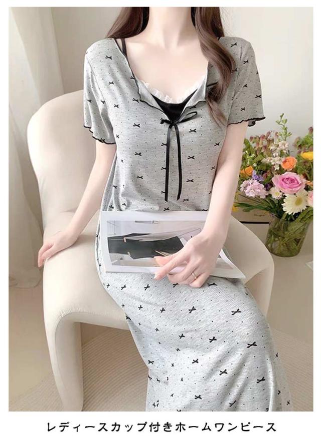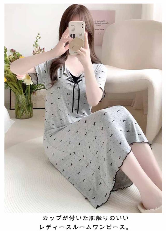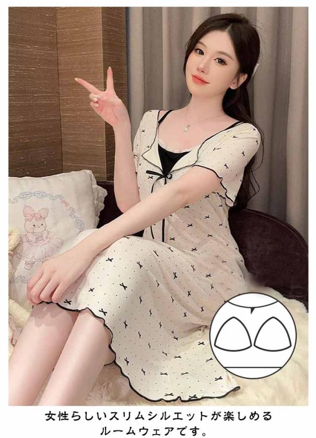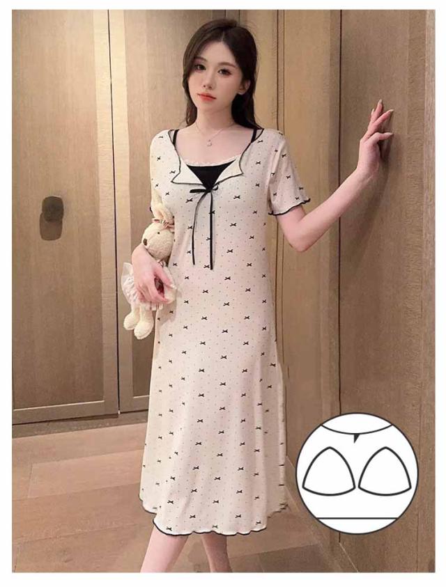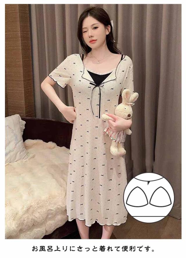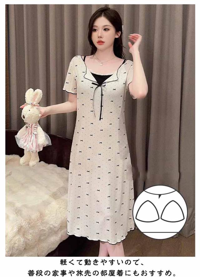 ワンピース パッド付 ワンピース おしゃれ 寝間着 カップ付き パジャマ 夏 夏 レディース 春 女性 半袖 膝丈 かわいい ネグリジェ 部屋着 パッド付き パッド付き ゆったり 無地 シンプル 可愛い 大きいサイズ 体型カバー 室内着 ワンピ リラックス 速乾 ノーブラ