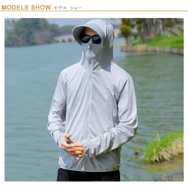 釣り パーカー サマージャケット メンズ UVカット 長袖 遮光 水着 コート 紫外線対策 涼しい 指穴 日焼け防止 アウター カジュアル サマー おしゃれ アウトドア スポーツ サイクリング UVカット 通勤 旅行 男性用