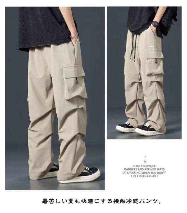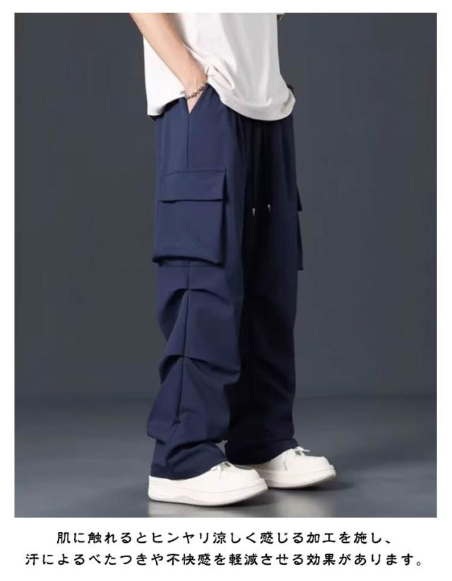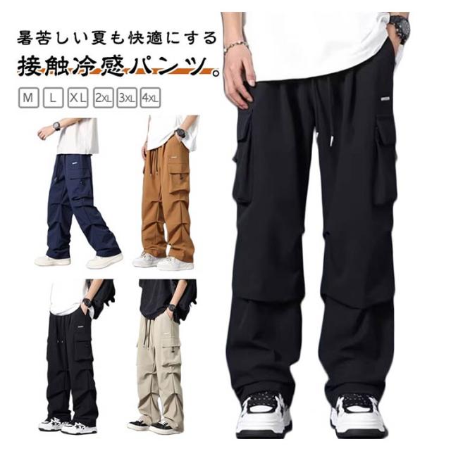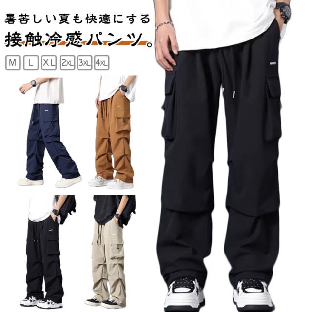 接触冷感 軽量 メンズ アイスシルクパンツ ロングパンツ 接触冷感 作業着 涼しい 夏 薄手 ボトムス ズボン カジュアルパンツ テーパードパンツ イージーパンツ 冷感パンツ ゆったり