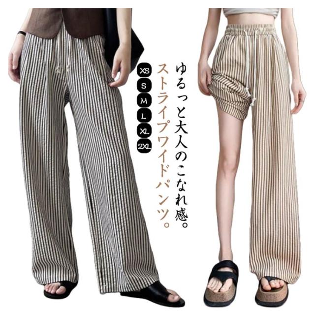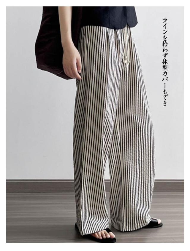 ワイドパンツ 大きいサイズ 涼しい パンツ ストライプパンツ 冷感 夏 ワイド 接触冷感 ストライプ ウエストゴム 体型カバー 低身長 高身長 夏用 ボトムス きれいめ ゆったり イージーパンツ ワイドパンツ ストレートパンツ リラックスパンツ