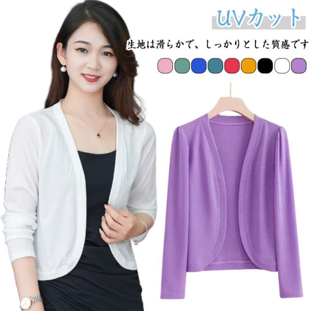 UVカット レディース 春 春 カーディガン 黒 薄手 オフィス 長袖 夏 サマー ショート丈 サマー カジュアル ママ UV 夏 秋 シワになりにくい 置きカーデ 紫外線対策 シアーカーディガン 羽織