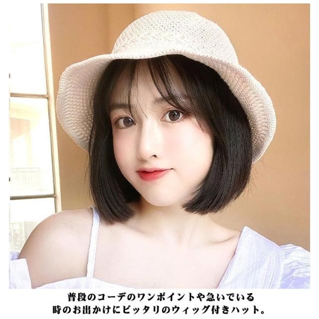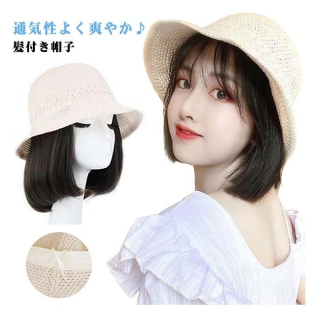 夏 帽子 ボブ ウィッグ付き つば広 日焼け防止 髪付き帽子 小顔効果 帽子付きウィッグ 帽子 ウィッグ付き 可愛い レディース ショート ストレート 医療用 かつら ウィッグ付き 髪付き 毛付き帽子 日よけ帽子 涼しい 春夏 通気性 送料無料 自然