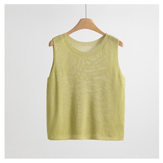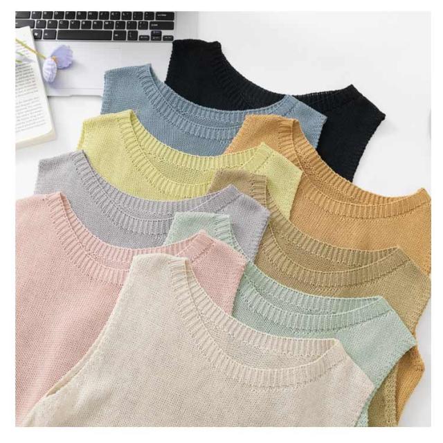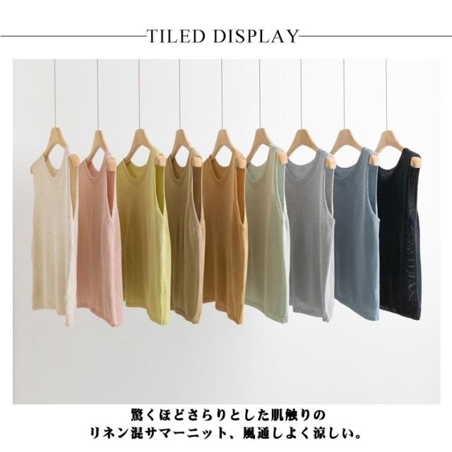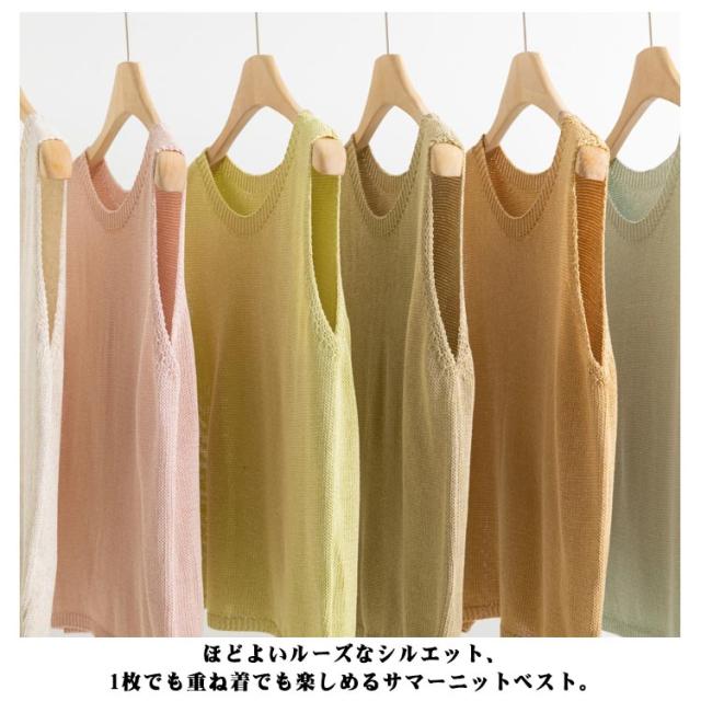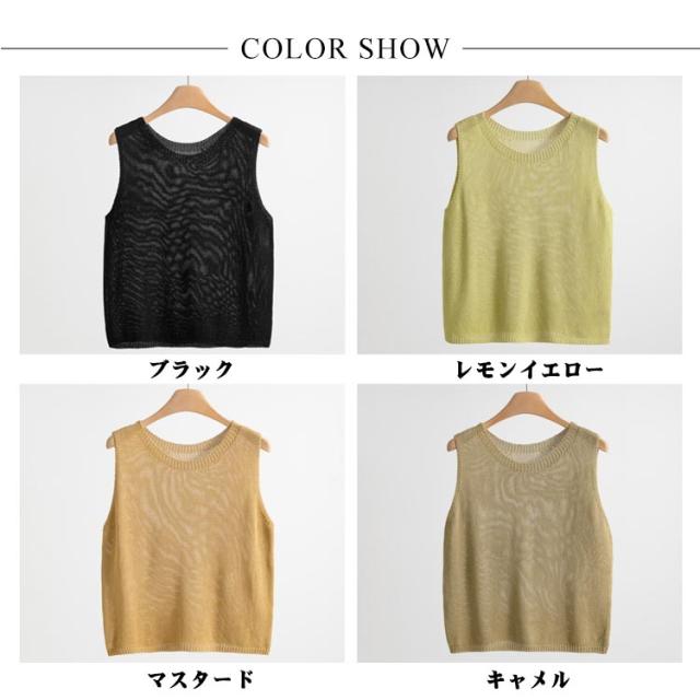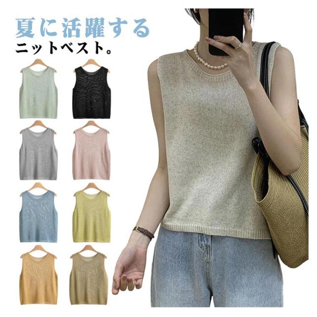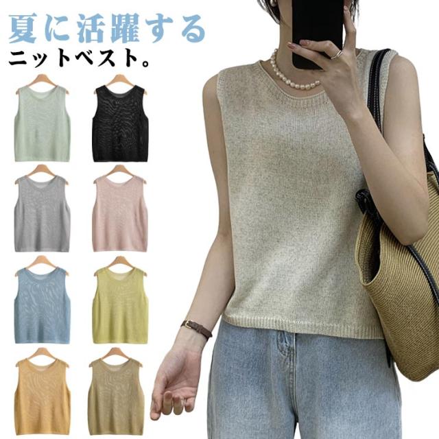 サマーニット トップス 冷房対策 タンクトップ ニットジレ 夏服 ノースリーブ サマーニット スクールニットベスト ベスト クルーネック 透かし 重ね着 オフィス 春夏 20代 30代 40代 50代 60代
