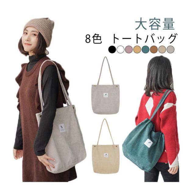 大学生 大容量 通勤 縦型 a4 通勤 通学 軽量 トートバッグ トートバッグ 無地 軽い レディース 軽量 頑丈 コーデュロイ シンプル おしゃれ かわいい 収納 保育園 ポケット かわいい グレー おしゃれ 通学 旅行 マチ広 ピンク ブラック 白 黒 秋 冬