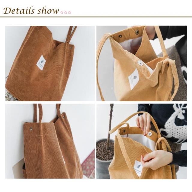 | 8色 大容量 トートバッグ 大人女子の、センスアップバッグ。 シンブルで可愛い見た日に加え、2つの内ボケット付きで収納も便利。 可愛さと機能性を両立したトートバッグ。 「高級感漂う」コーデュロイ生地。 | |