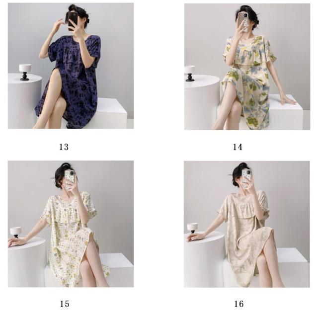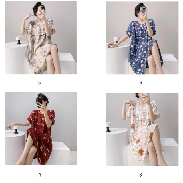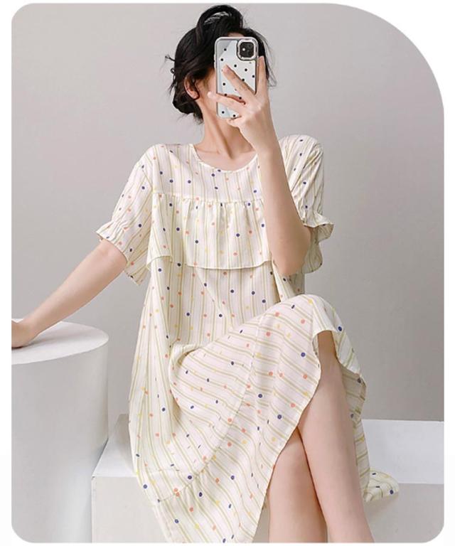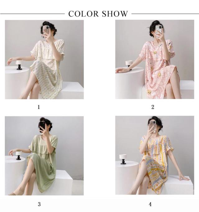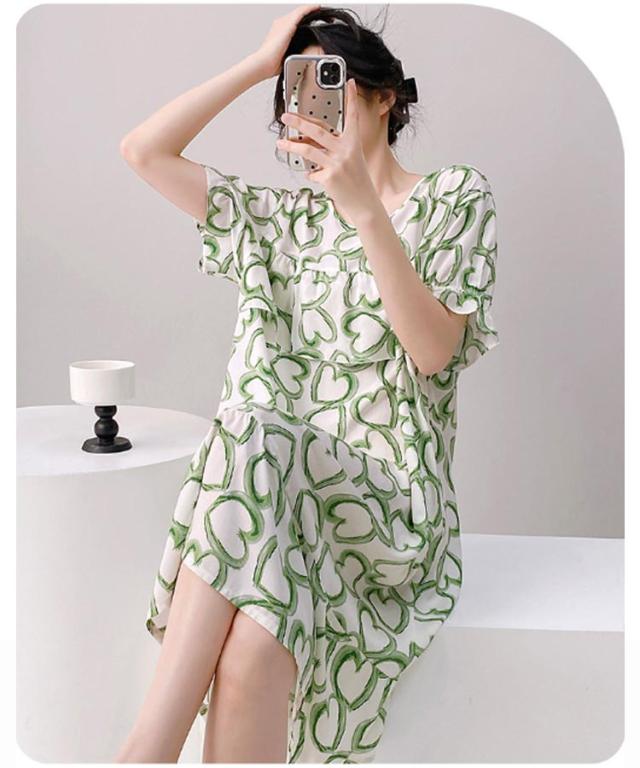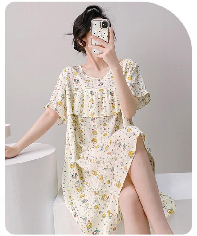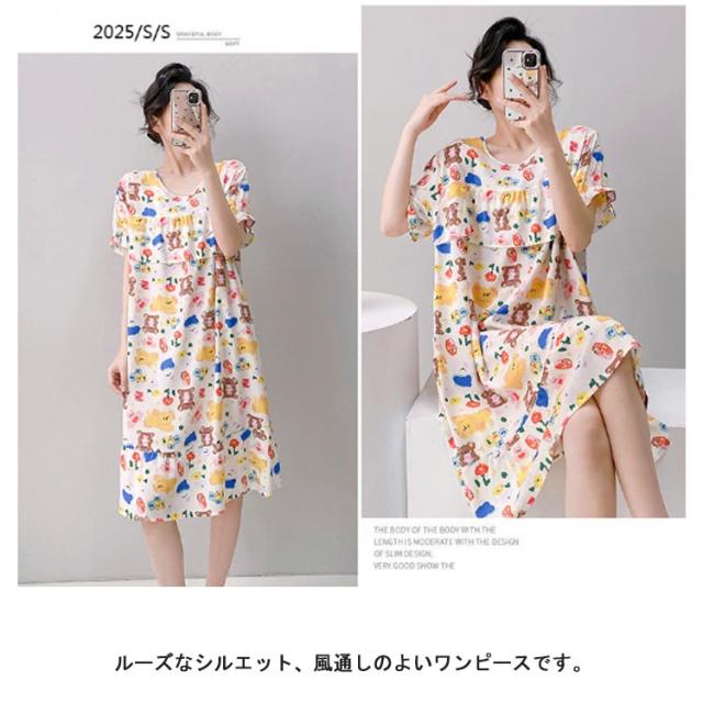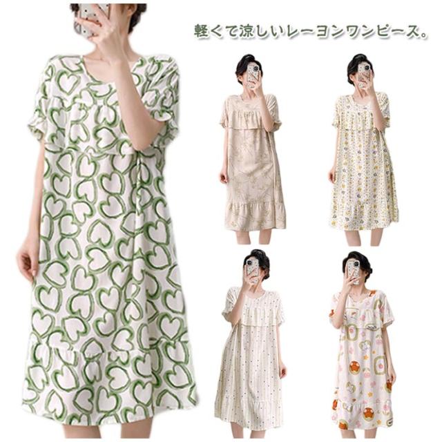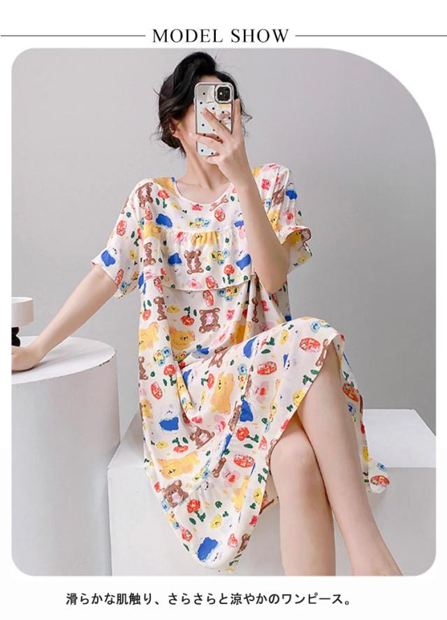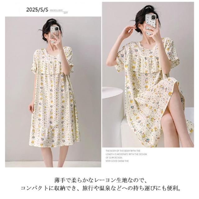 寝間着 クール 大きいサイズ 接触冷感 リラックスウェア 夏服 パジャマ ひんやり 半袖 寝巻 ひんやり 部屋着 湯上がり 涼感 ワンピース 薄い ネグリジェ レーヨン 可愛い フリル ナイトウェア