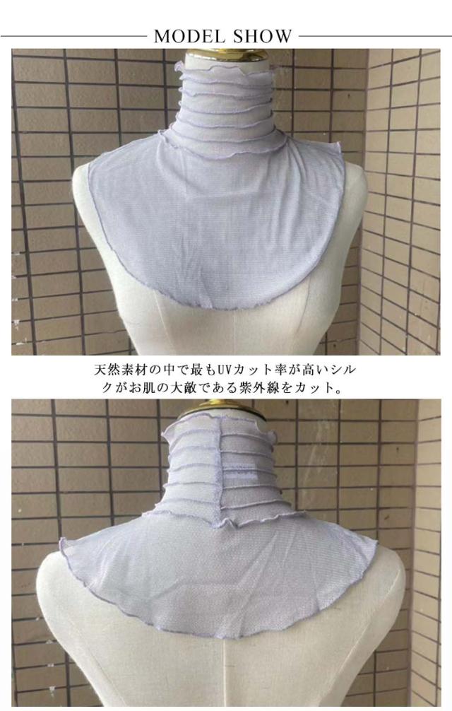 絹 紫外線 シルク シルクメッシュ タートルネック ネックカバー 薄い 涼しい 夏用 付け襟 しわ隠し シルク フリル 日よけ つけ襟 スカーフ 首隠し フォーマル UVケア 首 日焼け防止 紫外線対策