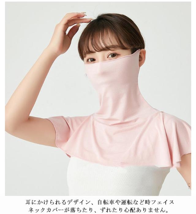 | 顔・首・デコルテ・肩を360度しっかりガード♪ キャミやタンクトップ、ノースリーブワンピースなど着用した時、肩の日焼け防止にもしっかりできます。 シルク混生地なので、長時間付けても不快感がなく、しっとりとした肌触り。 耳にかけられるデザイン、自転車や運転など時フェイスネックカバーが落ちたり、ずれたり心配ありません。 | |