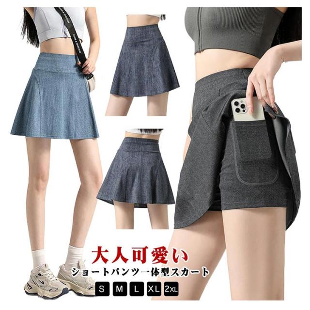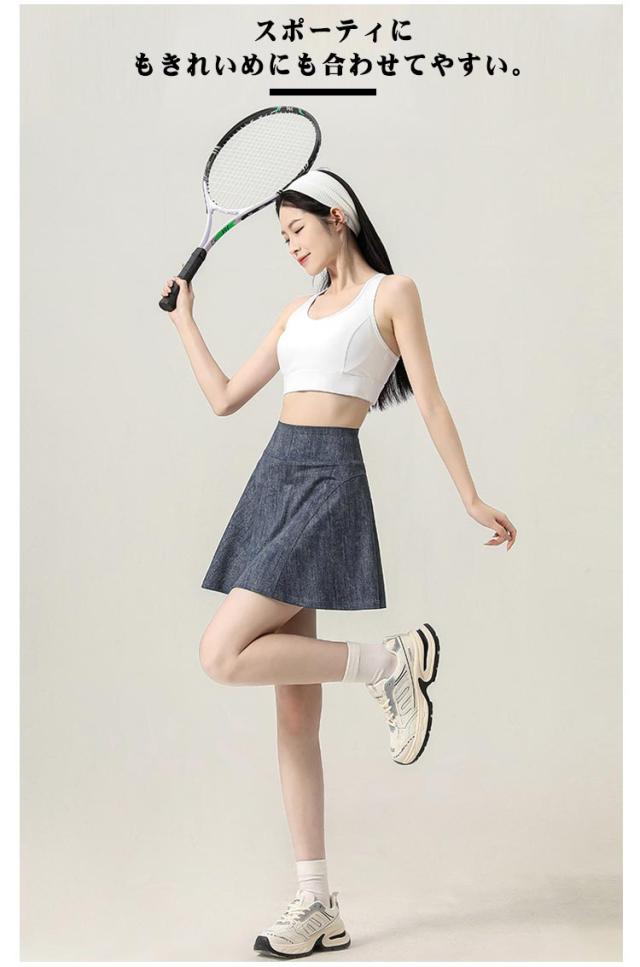 | スポーティにもきれいめにも合わせてやすい。 大人可愛いフレアミニスカート、インナーパンツ一体型なので安心してスポーツをお楽しみいただけます。 スカート同生地のインナーパンツ付き、見えても恥ずかしくないテニススカート。 しっかりしているのに軽くて伸縮性のある生地を使用しているので、屈んだときもお尻や太もも周りを気にせず動きやすいです。 ショートパンツは大きめポケット付きで、スマホなど小物がすっぽり入るからとても便利です。 どんなスタイルとも相性抜群のデニムスカート、人と被らない1枚です。 | |