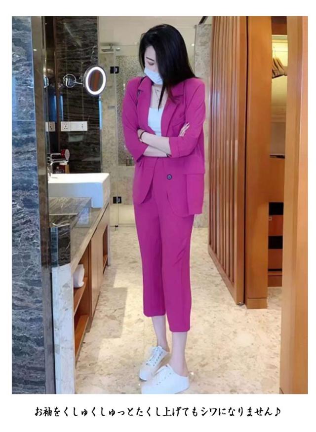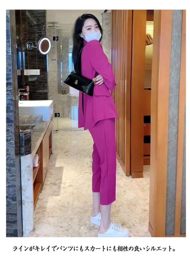| オケージョンにも使える大人のセットアップパンツスーツです。 襟付きのテーラードジャケットは着丈が長くなっております。 ラインがキレイでパンツにもスカートにも相性の良いシルエット。 お袖をくしゅくしゅっとたくし上げてもシワになりません♪ キレイめテーパードパンツはストレッチ性抜群だからヒップやウエストを気にせずご着用頂けます。 セットアップとしての着用はもちろん単品でもお楽しみいただけます。 | |