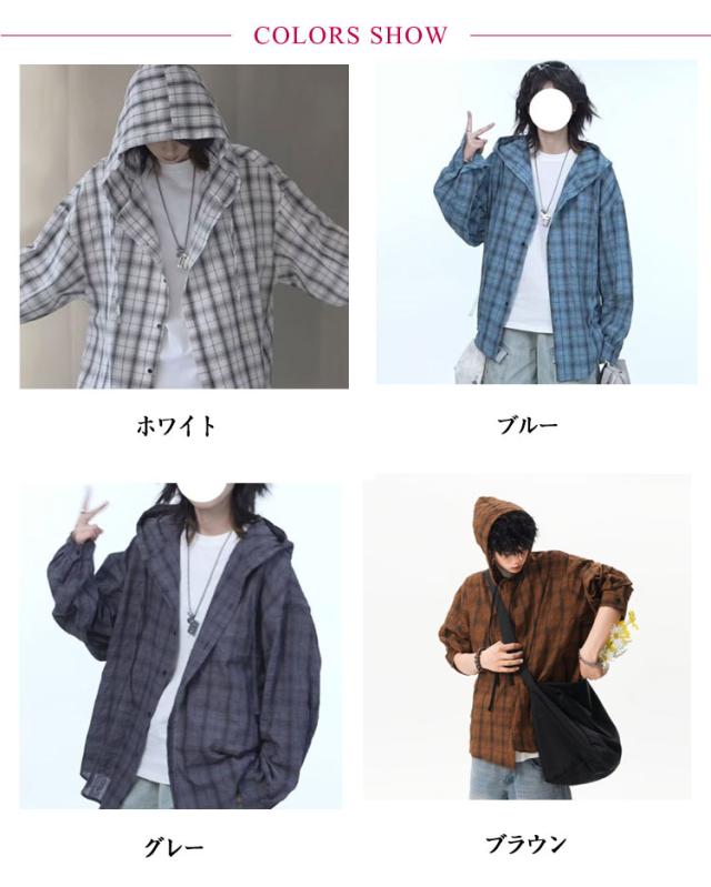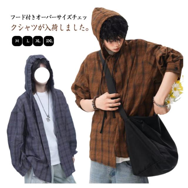 シャツジャケット フード付きオーバーサイズチェックシャツ メンズ パーカー シャツ フード付き パーカー トップス フード 全4色 チェックシャツ レディース フード付きオーバーサイズチェックシャツ 長袖 ファッション チェック柄 シャツパーカー 20代 30代 40代 50代