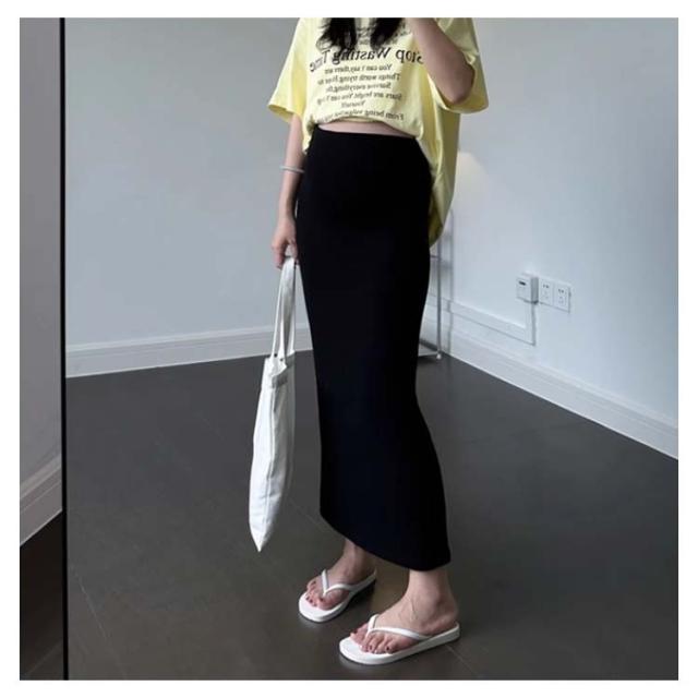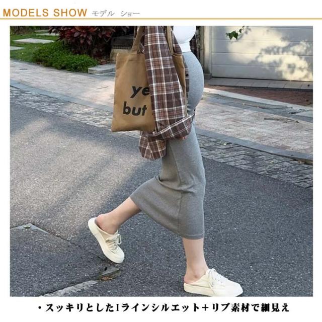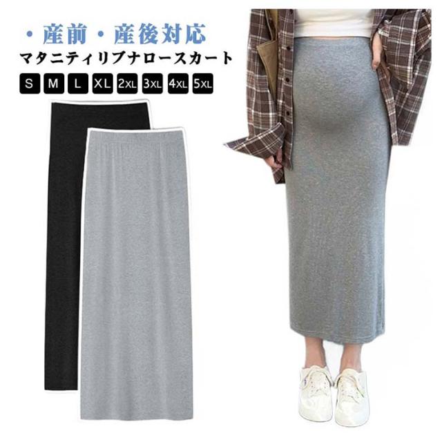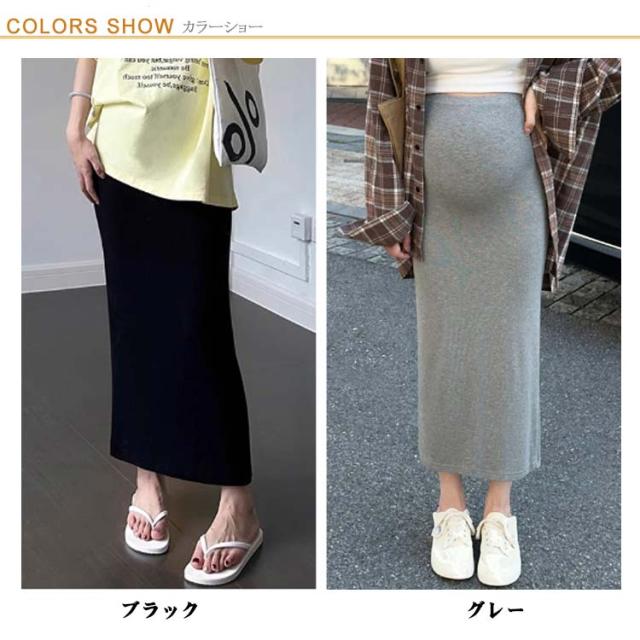 マタニティ スカート ナロースカート ストレート ストレッチ リブ ウェストゴム スカート ロング丈 タイトスカート 妊婦 妊婦服 オシャレ おしゃれ