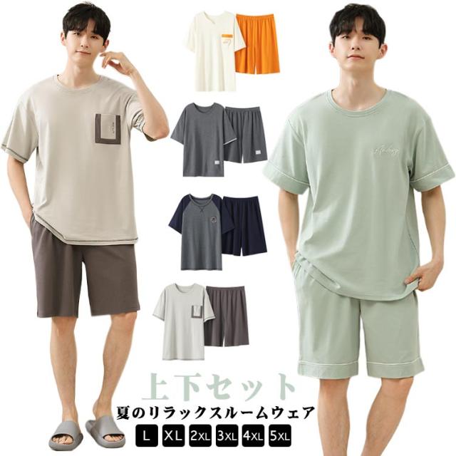 メンズ 半袖 ハーフパンツ 上下セット パジャマ ホームウェア 部屋着 半ズボン ルームウェア 夏物 誕生日祝い