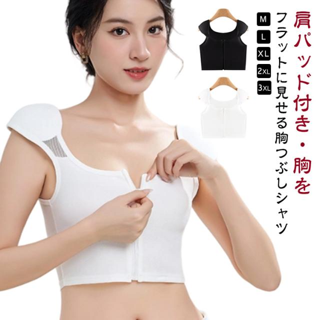 コスプレ 胸つぶしシャツ 胸つぶしシャツ レディース 胸潰し 胸を小さく見せる フロントファスナー 男装用 ブラジャー パワーショルダー インナー 肩パッド付き バスト押さえ 揺れない 補正下着 肩対策 なで肩 スポーツ 通気性