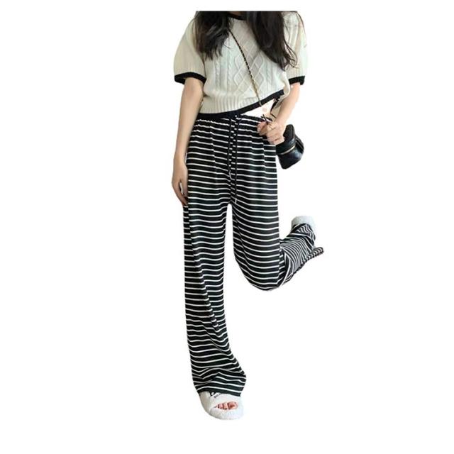 レディース ワイドパンツ 10分丈 ボトムス ストレートパンツ ボーダー ルームウエア 部屋着 おしゃれ ルームパンツ カジュアルパンツ イージーパンツ ウエストゴム 楽ちん ロングパンツ カジュアル レディース 春 夏