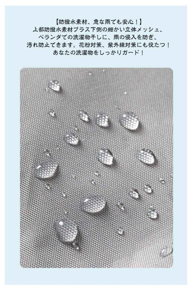 | 【防撥水素材、急な雨でも安心!】上部防撥水素材プラス下側の細かい立体メッシュ、ベランダでの洗濯物干しに、雨の侵入を防ぎ、汚れ防止できます。花粉対策、紫外線対策にも役たつ!あなたの洗濯物をしっかりガード! 【ピンチハンガー専用・目隠しにも】54×38cmサイズ以下のピンチハンガーに適用。靴下や下着干し際に、目隠し効果もあります。 【洗濯物掛け取り簡単】カーテン式デザインで、一度ピンチハンガーにセットし、開口部を上げて、簡単に洗濯物を掛け取りできます。 【通気性がいい】下側に通気性がよいメッシュ素材と底部のオープンデザインにより、通気性が良く、衣類の乾燥に影響を与えません。 | |